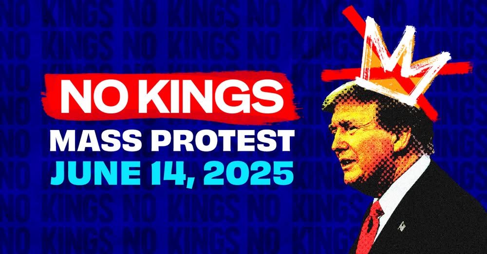 Sabato 14 giugno ci sono anche manifestazioni di protesta in tutto il paese contro la politica autoritaria di Trump. Lo slogan è “No Kings” (vedi) per dire l’ovvio, e cioè che gli Stati Uniti si sono liberati di un monarca 249 anni fa, e che solo prima di allora, nell’antico regime, si festeggiava il compleanno del re vivente. Le manifestazioni sono un paio di migliaia, organizzate da centinaia di associazioni e sindacati, nelle grandi città e nelle comunità più piccole (dalle parti che ho frequentato io, per dire, sono una sessantina in Wisconsin, una trentina in Indiana). Il rally nazionale è a Filadelfia, per tutti i motivi storico-patriottici immaginabili. Non c’è alcun rally a Washington, per evitare incidenti o provocazioni trumpiane.