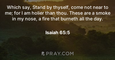 In Isaia 65:5 la reazione di Dio a chi si comporta così non è una padronale accentuazione del “più santo di te”, lui che, almeno lui (essendo Dio), potrebbe davvero permetterselo e i suoi avversari potrebbe incenerirli all’istante. È piuttosto un senso di fastidio, da uomo di mondo (se si può dir così di Dio): “Costoro sono un fumo nelle mie narici, un fuoco che arde tutto il giorno”. Dio lascia intendere: ma che xxxxx! Fumanti, altro che! E aggiunge: ma tutto il giorno, anche no! Direi che ha ragione (se posso).